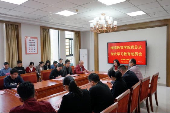 3月24日下午,继续教育学院党总支在204会议室召开党史学习教育动员会,会议由学院党总支书记李文萍同志主持,全体党员参加会议。