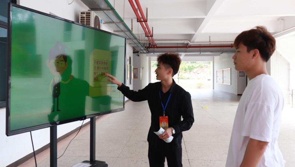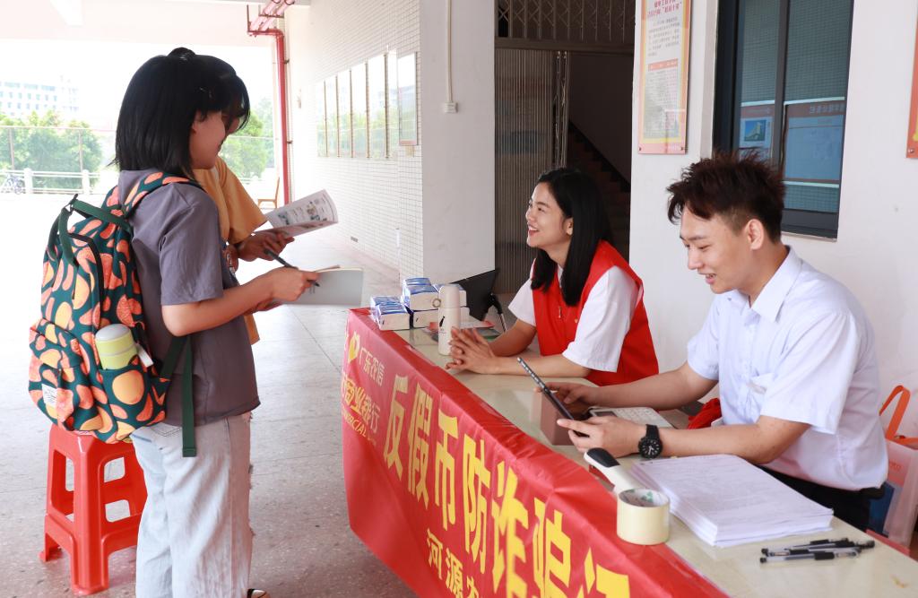活动现场,银行工作人员向师生们发放宣传资料,讲解宣传防诈骗知识,讲解假币识别的技巧,重点介绍了人民币的防伪特征。通过“一看、二听、三摸、四测”的互动方式,现场教学如何识别人民币真伪。银行工作人员还在现场播放防诈骗宣传视频,生动、真实的案例,让师生们对于诈骗的形式和手段有了更充分的了解。