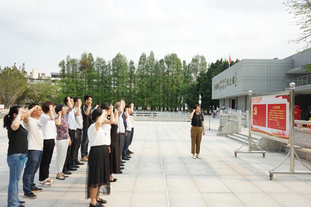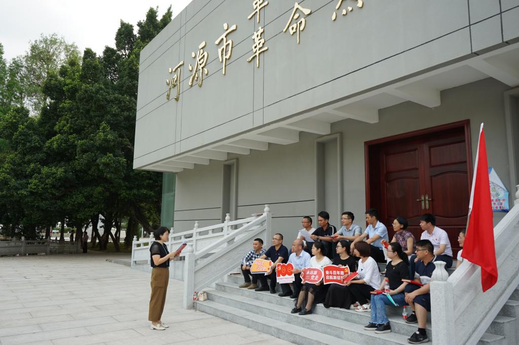 随后,全体党员参观了河源革命史长廊,深入了解河源的革命斗争史和河源革命先烈的英雄事迹。最后,李文萍在革命烈士纪念馆前现场给全体党员讲授党史知识。