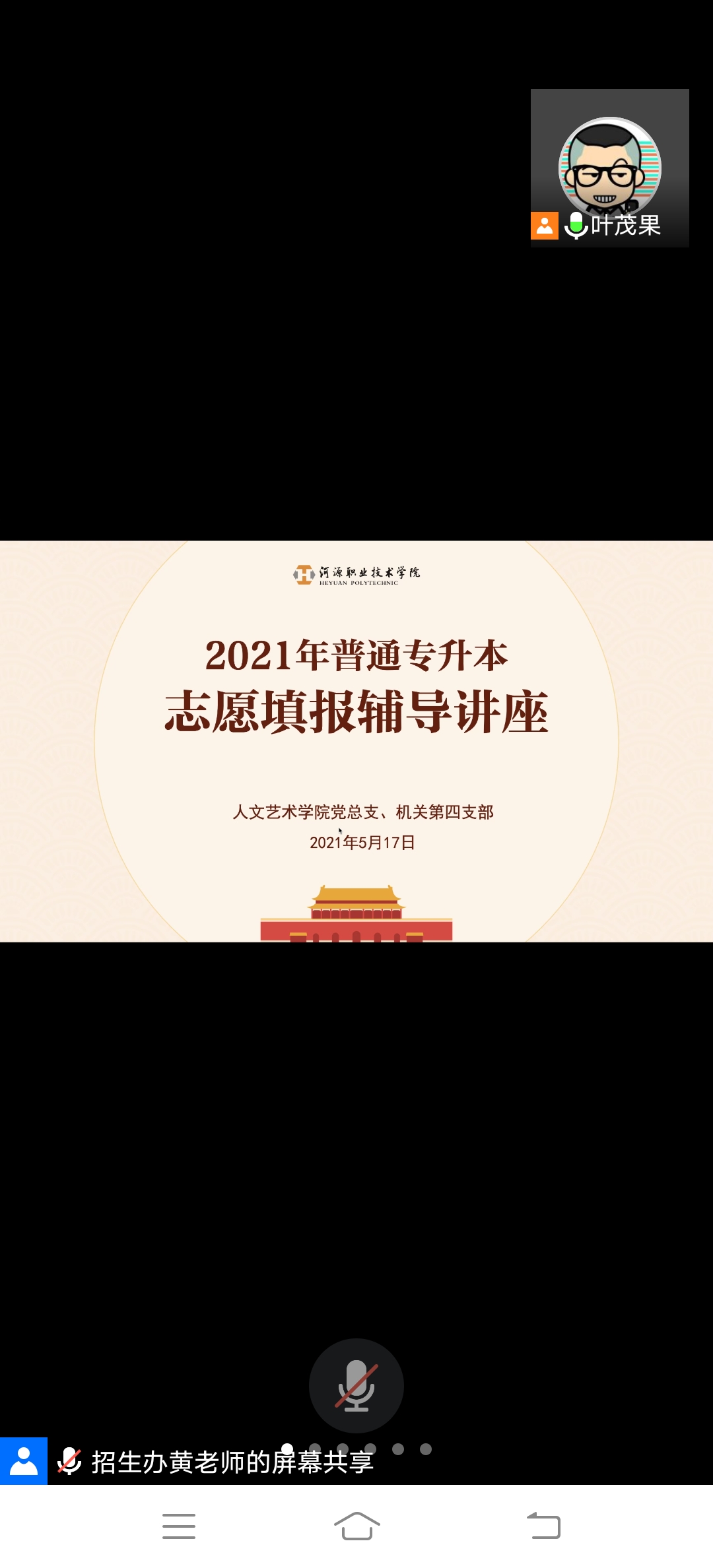 为扎实开展“我为群众办实事”实践活动,把党史学习教育成果转化成为人民服务成果。5月17日,人文艺术学院党总支部联合机关第四支部以视频会议的形式召开2021年普通专升本志愿填报辅导讲座。(图1)