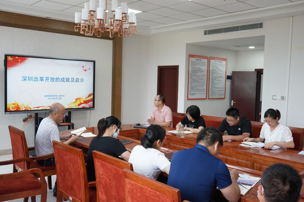 5月26日下午,继续教育学院党总支专题学习改革开放新时期历史。党总支副书记彭仲文同志主讲,全体党员参加学习。