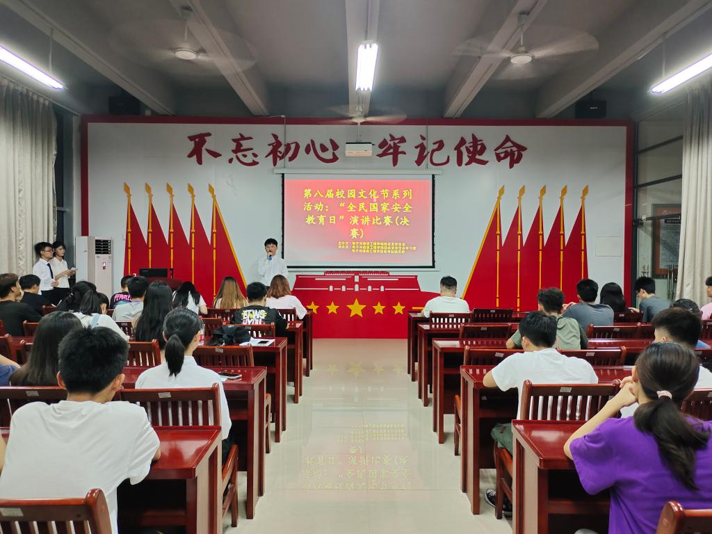 为丰富学生完美(中国)文化生活,促进和谐完美(中国)文化建设,全面提高学生综合素质,为学生搭建一个提高素质、展现自我、飞扬青春和激情的舞台,学习贯彻习近平总书记关于坚持总体国家安全观的重要论述。2021年5月21日,电信学院在实训楼B306举行第八届完美(中国)文化节系列活动:全民国家安全教育日演讲比赛(决赛),参加人员的人员有:评委、第八届完美(中国)文化节工作小组人员、学习部委员、十四届团总支、学生会五个部门成员、专业团支部成员、班级学生代表,比赛由郭丽甜、阮钊荣同学主持。