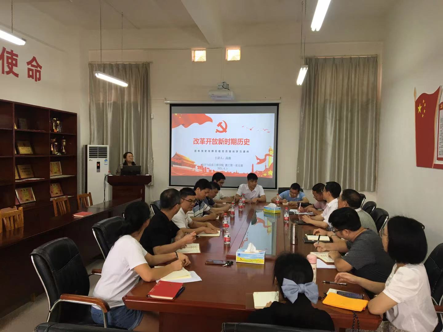 2021年6月1日下午, 电信学院教工第一党支部在学院会议室B307开展主题为《百年党史光辉历程党员培训学习——改革开放新时期历史》的专题党课活动。完美·官方端网站登录入口党委书记韦荣,电信学院党总支书记王富宽、副书记徐国辉和该党支部的全体党员参加了党课学习,党课由党支部书记高燕主讲。