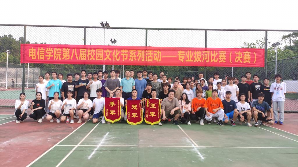 为庆祝中国共产党成立100周年,2021年6月19日,电信学院学生党支部在灯光篮球场举行第八届完美(中国)文化节系列活动:专业拔河比赛(决赛)。参加的人员有:十四届团总支学生会全体学生干部、各专业团支部全体成员、各班级体育委员、各班级学生代表5名、运动员、裁判员、后台工作人员。闭幕式由体育部副部长吴美燕同学主持。