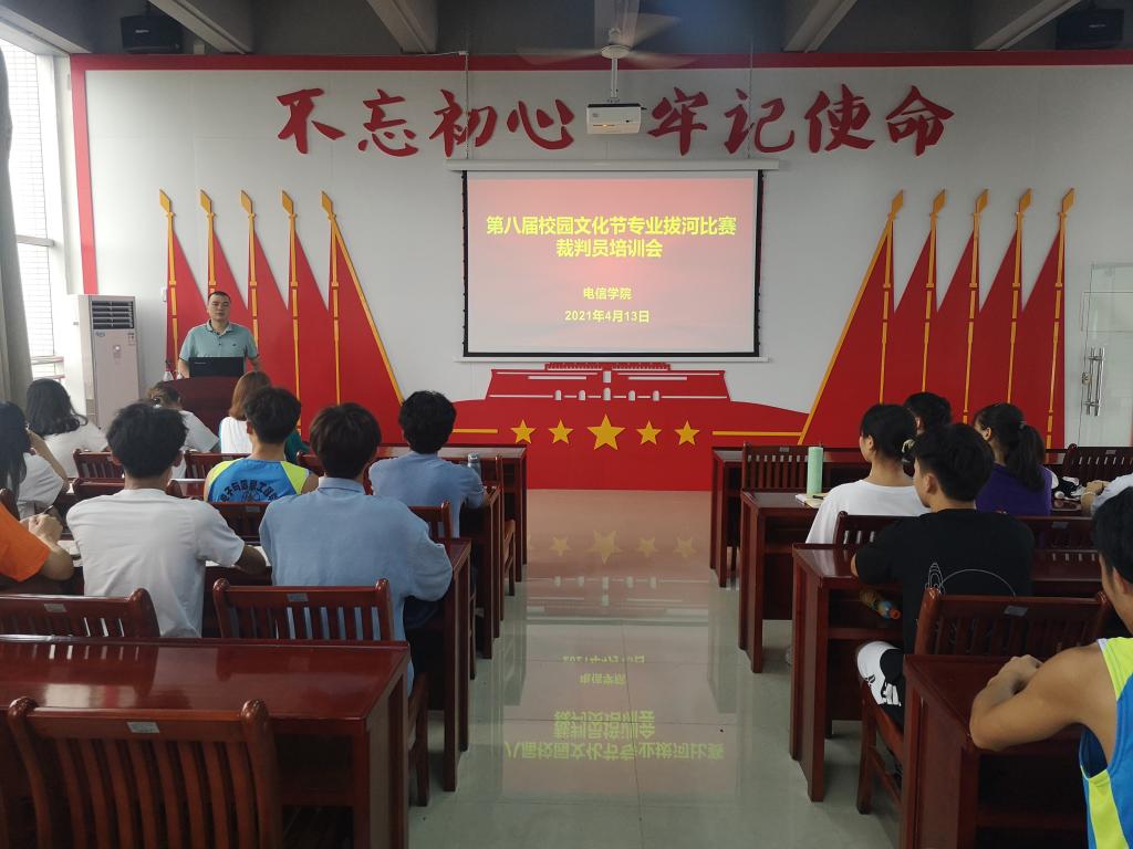 2021年4月13日,学院学生会体育部举行专业拔河比赛“裁判员”培训会,杨日奎老师主讲