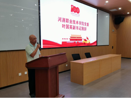 最后,叶国英以“中国共产党的伟大”为主线,结合习近平总书记在“七一勋章”颁授仪式上的讲话,带领同学们一起回顾了建党百年光辉历程,现场为学生党员上了一堂生动的党课。他指出,我们党之所以历经百年而风华正茂、饱经磨难而生生不息,就是凭着那么一股革命加拼命的强大精神。他深情的说到“心中有理想,脚下有信念”,希望全体学生党员细细体味这句话的深刻内涵。他期望全体学生党员做一个坚定理想信念,知党爱党跟党走的合格党员。