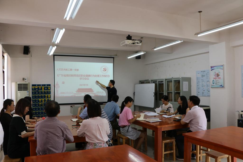 7月13日下午,人文艺术学院教工第一党支部在行政楼C208召开了党组织生活会,王小宁副校长出席了此次组织生活会。会议学习了《广东省高校教师违反职业道德行为处理工作指引》、党史知识线上竞答活动。会议按照上级党组织要求,党员同志们从“学习习近平总书记在庆祝中国共产党成立100周年大会上的重要讲话;学习习近平新时代中国特色社会主义思想及指定材料;党史学习教育目标对照差距不足;党员先锋模范作用发挥”四个方面进行学习心得分享、开展批评与自我批评。