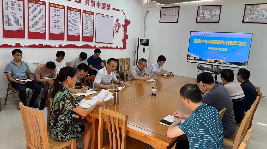 2021年7月16日,信息中心在中心会议室召开师德师风专题学习暨期末工作总结会议,中心全体人员参加,会议由信息中心主任杨文主持。