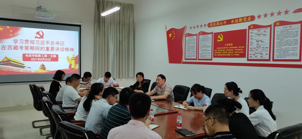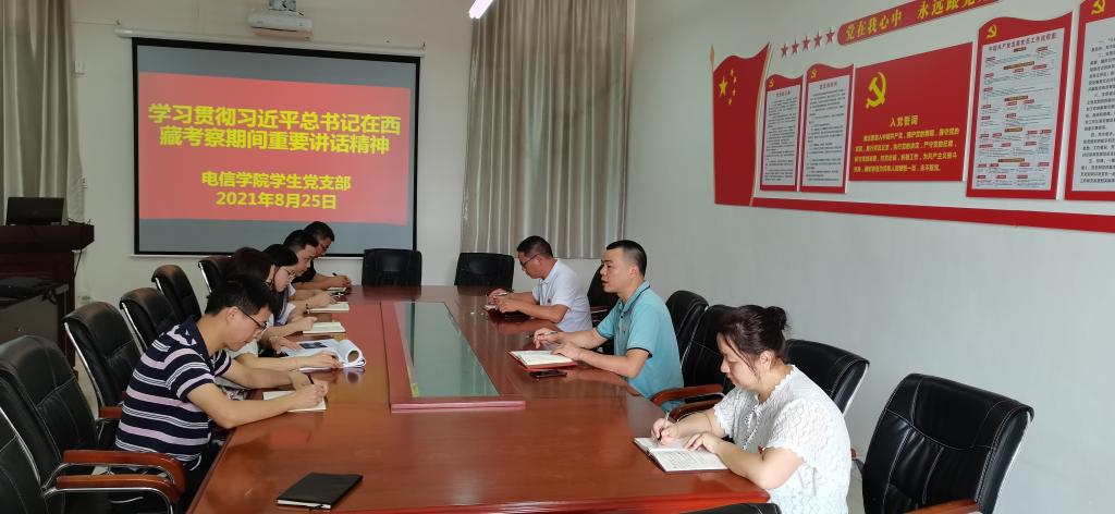 根据中共河源市委党史学习教育领导小组《关于转发<关于认真学习贯彻习近平总书记在西藏考察期间重要讲话精神的通知>的通知》要求,按完美·官方端网站登录入口安排,2021年8月25日,电信学院党总支部在实训楼B306开展“学习贯彻习近平总书记在西藏考察期间的重要讲话精神”专题学习活动,学院全体党员参加了会议,会议由学院党总支副书记徐国辉主持。