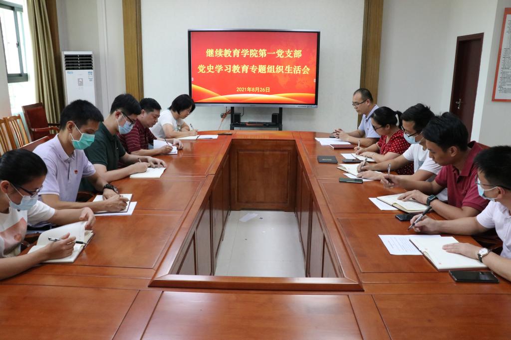 8月26日,继续教育学院第一党支部、第二党支部及学生党支部分别召开党史学习教育专题组织生活会。继续教育学院党总支书记李文萍同志以普通党员身份参加了第一党支部的组织生活会。