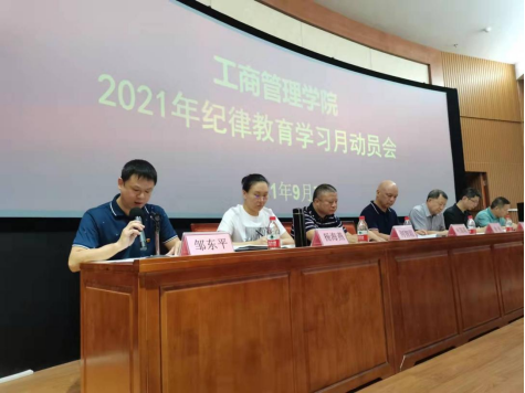 为深入贯彻全面从严治党、从严治校,推进党风廉政建设高质量发展,9月7日下午,工商管理学院召开以“学党史悟思想,守纪律铸忠诚”为主题的纪律教育学习月活动动员大会。完美·官方端网站登录入口党委副书记、纪委书记叶国英同志和学院全体教职工参加会议。