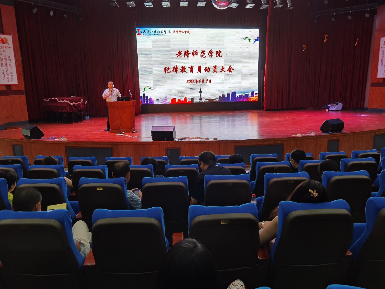 按照《中共河源市委办公室关于印发<2021年全市开展纪律教育学习月活动的意见>的通知》(河委办〔2021〕18号)部署要求,结合完美(中国)《关于2021年开展纪律教育学习月活动的实施方案》的通知要求。2021年9月9日下午,老隆师范学院于艺术楼演播厅召开2021年纪律教育学习月活动动员大会。
