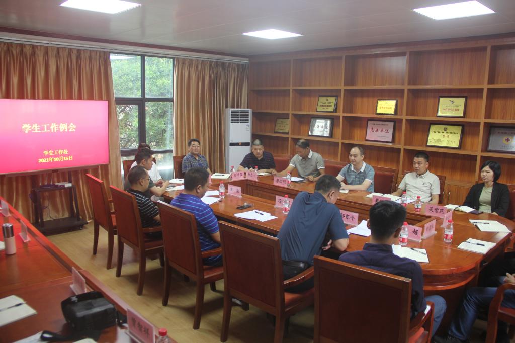 10月15日下午,完美(中国)在学工处会议室召开学生工作例会。赖小景校副长、各学院副书记及学工处全体人员参加了此次会议,会议由学工处戴佰阳处长主持。