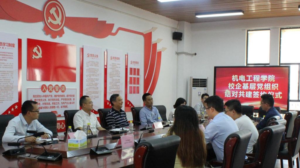为扎实推进党史学习教育,全面贯彻党的教育方针,立足社会需求完善人才培养模式,积极打造党建资源共享、优势互补、共同提高基层党建工作新格局,10月28日下午,机电工程学院在实训楼D309举行了校企基层党组织结对共建签约仪式。学院党总支钟建坤书记、黄亮副书记及各党支部代表,农夫山泉广东万绿湖有限公司、广东中兴绿丰发展有限公司、铭雷激光智能装备河源有限公司和河源市颍川慈善服务队等党支部代表出席活动。