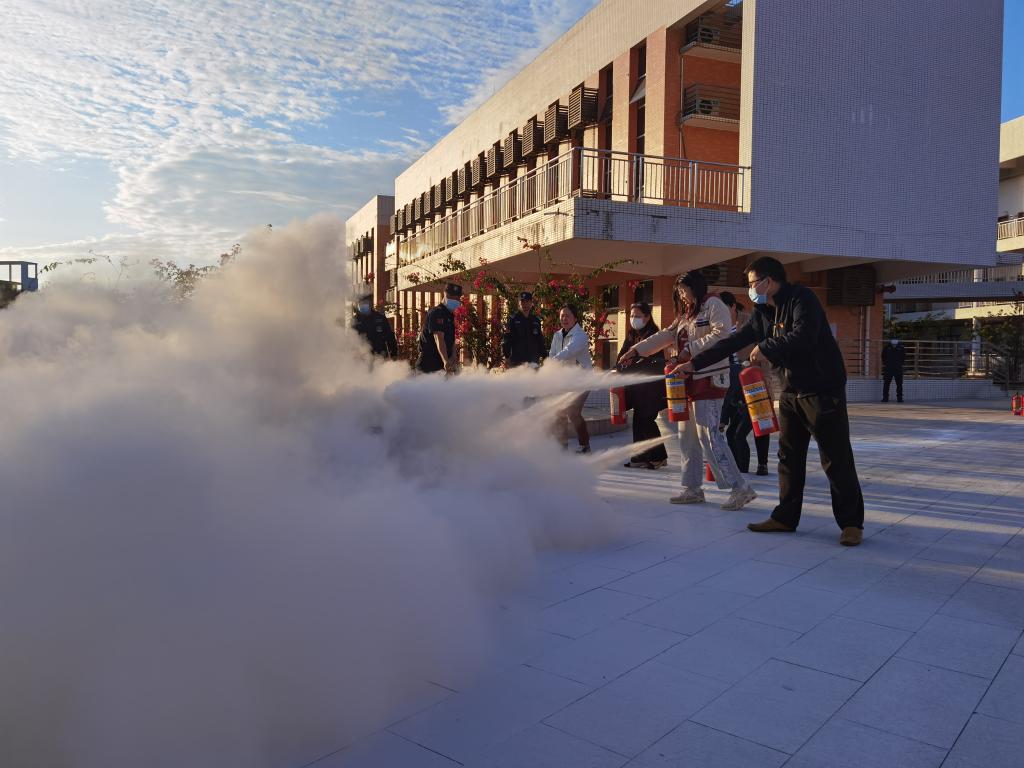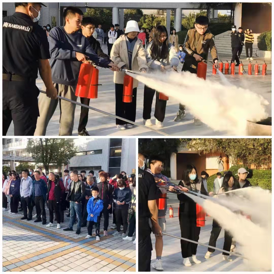 活动中,消防安全宣传员结合实例向师生重点讲解了在教学楼发生火灾时如何自救逃生,如何预防和处置初期火灾等消防安全知识。随后,消防安全宣传员演示了灭火器的正确使用方法,并让师生体验使用灭火器扑救初期火情。