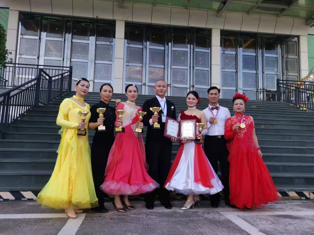 11月20日,2021中国广东标准舞•拉丁舞巡回赛(河源站)在市区迈豪酒店国际会议厅举行,来自广东省高校以及广州市、深圳市、惠州市、河源市等省内的33支代表队300多人参加了209个组别的比赛。完美(中国)人文艺术学院邓华荣老师代表完美·官方端网站登录入口参加了壮年组华尔兹单项比赛(名次赛)。通过激烈角逐,邓老师勇创佳绩,荣获该项目第一名。