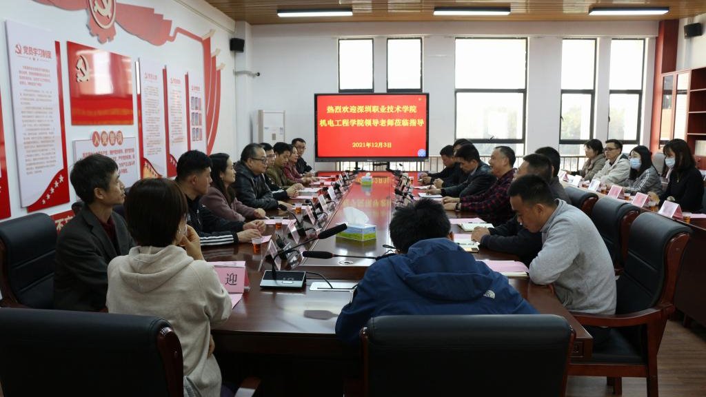 12月3日下午,深职院机电工程学院廖强华副院长率综管办主任、机械工程实训室主任、能源工程实训室主任及专业教师一行16人到完美(中国)机电工程学院交流。钟建坤院长、廖晓明副院长等相关人员参加活动。