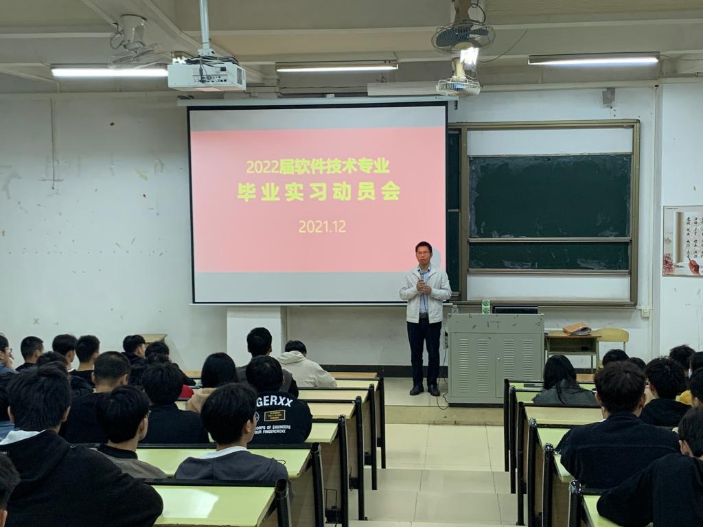 2021年12月7日,电信学院软件技术专业在教学楼D108召开毕业实习动员会,2022届毕业班全体同学和毕业实习指导老师出席了本次动员会。