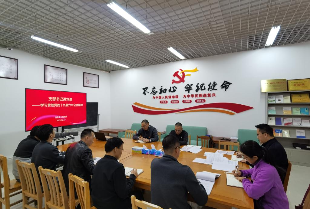 12月17日下午,信息中心党支部在中心会议室召开党员大会,全面深入学习贯彻党的十九届六中全会精神。会议由宣传委员杨木强同志主持,支部全体党员及部门负责人参加了学习。