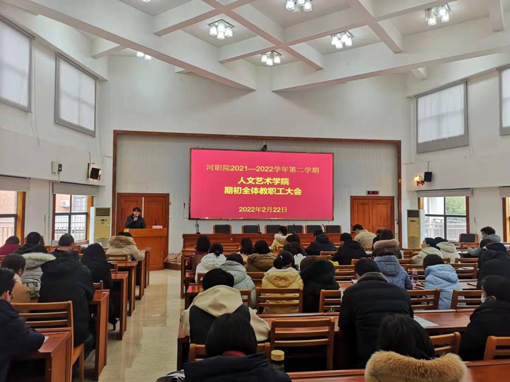 2月22日下午15:00,人文艺术学院在行政楼C108召开了期初教职工大会,学院全体教职工参加了此次会议。