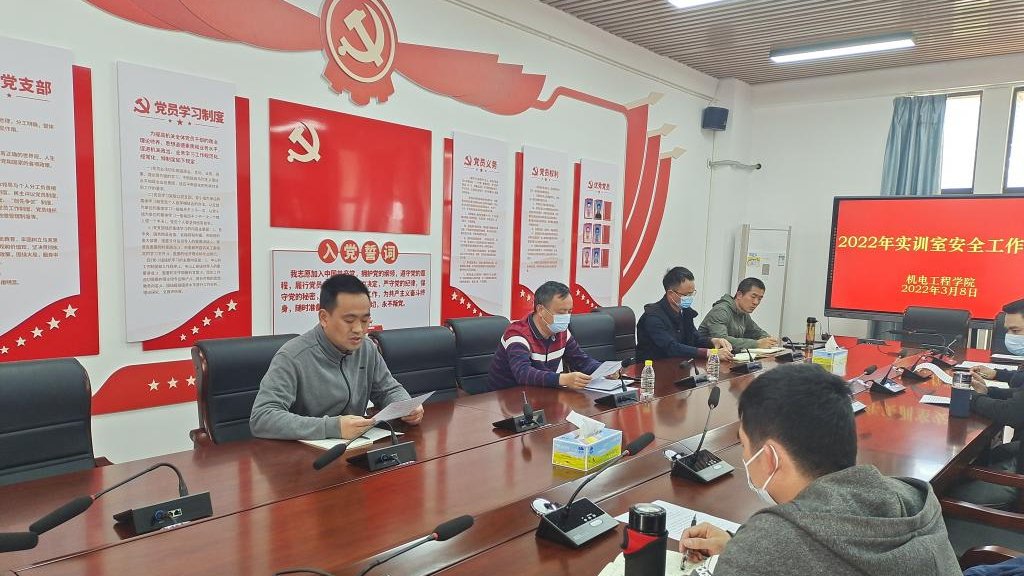 为提高实训室安全管理能力和水平,3月8日下午,机电工程学院在实训楼D309召开2022年实训室安全工作会议,学院班子成员及实训部全体人员参加了此次会议。