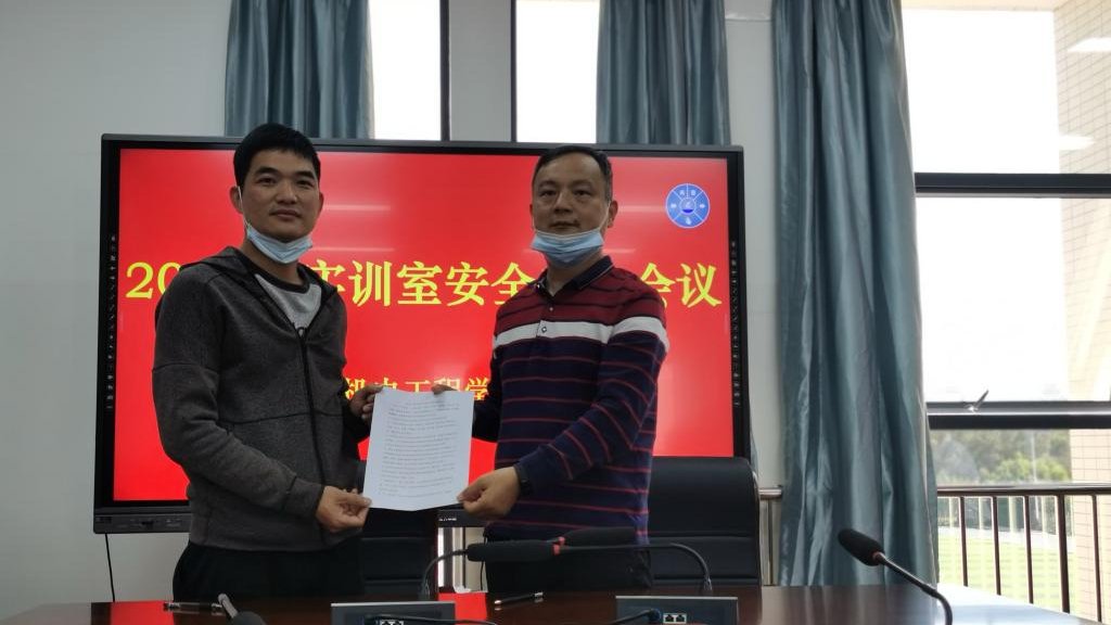 最后,钟建坤院长与各实训室管理员、实训指导教师签订了安全责任书。