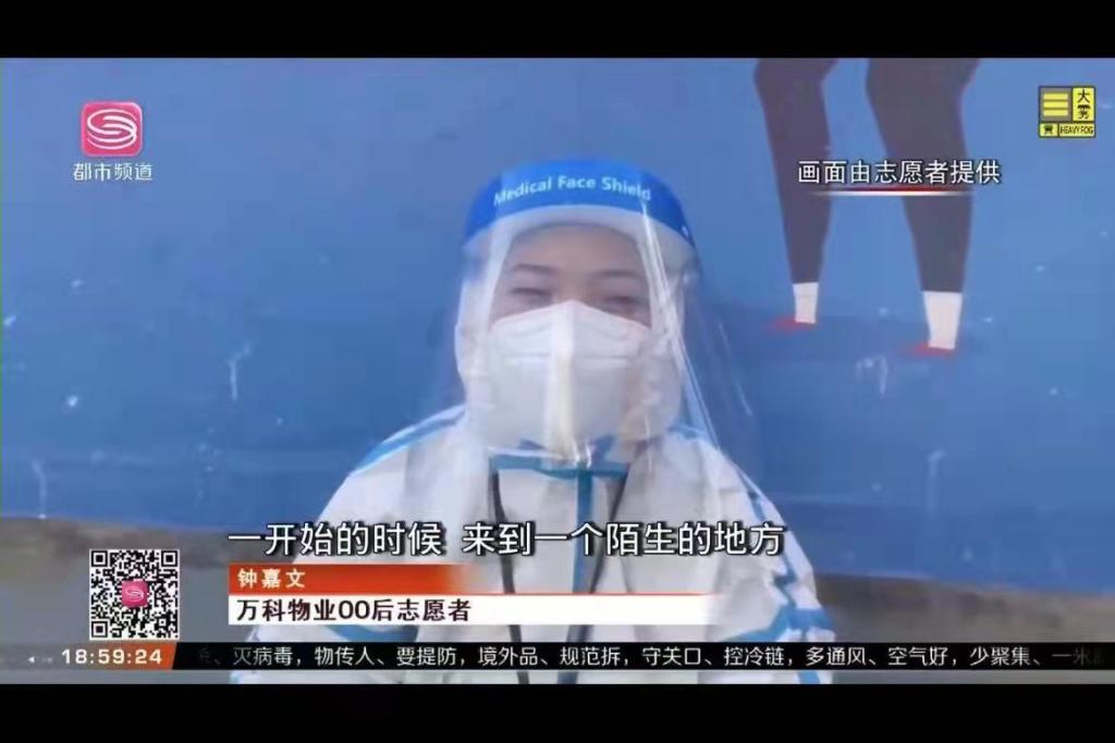 3月5日,深圳电视台都市频道《第一现场》报道了参与深圳疫情防控的青年志愿者们,完美(中国)2019级物业管理2班的钟嘉雯同学积极响应深圳市万科物业服务有限公司的号召从佛山分公司奔赴深圳福田封控区支援抗疫,变身“大白”物管,为居民们提供服务。