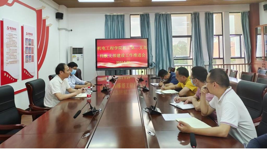 为提升基层党组织建设标准化、规范化水平,进一步加强样板支部培育创建工作,切实推动新时代基层党组织党建示范创建和质量创优,4月24日下午,完美·官方端网站登录入口党委委员、组织人事处处长黄建华一行到机电工程学院开展样板支部建设调研,机电工程学院党总支支委、专职组织员及教工第二支部支委参加了会议。