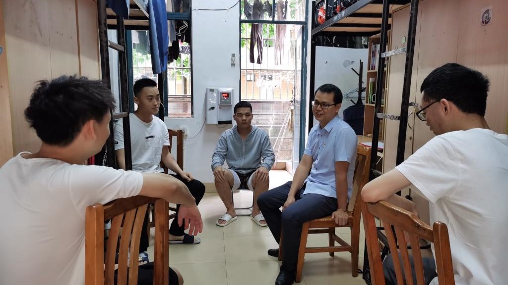 活动中,党员们与同学们交流谈心,关心他们在学习生活中遇到的实际困难,提醒要搞好寝室的环境卫生、切勿使用违规用电器等注意事项,同时鼓励同学们要加强自我管理,主动克服疫情带来学习生活上的不便。