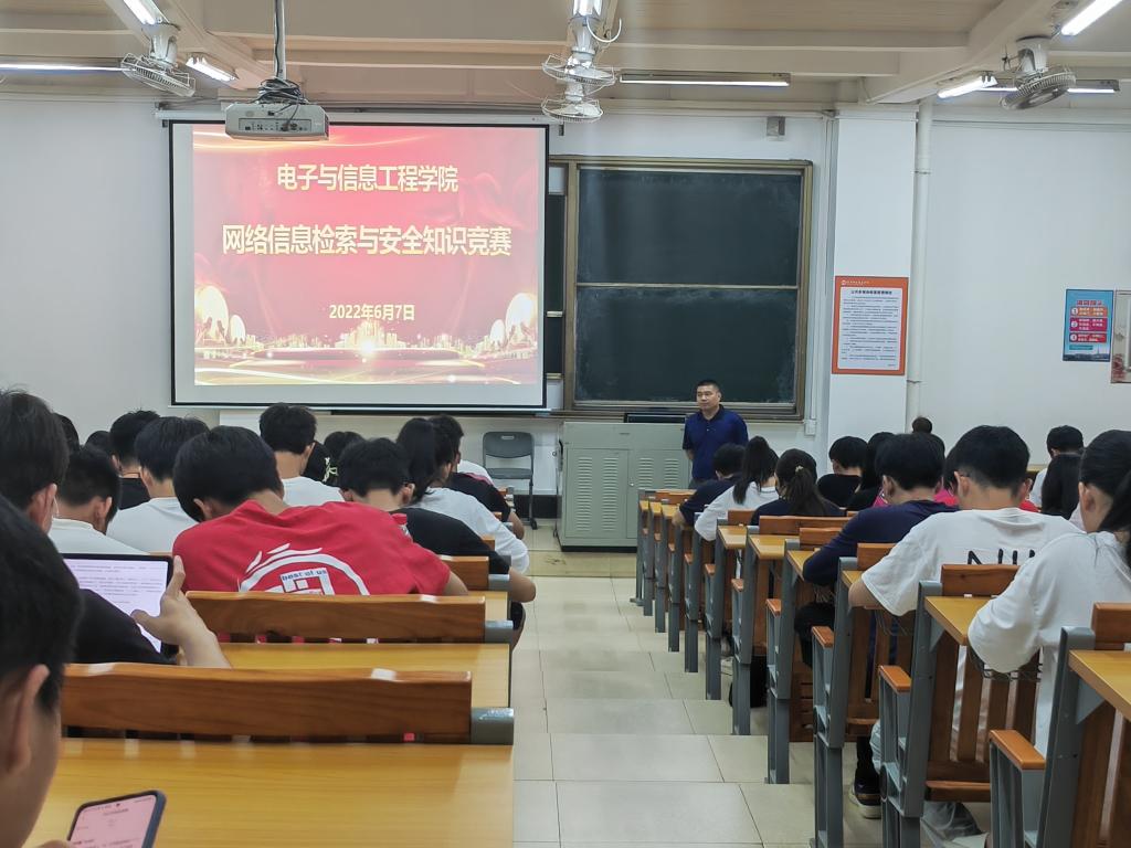 2022年6月7日,由电子与信息工程学院主办,计算机网络技术专业承办的网络信息检索与安全知识竞赛在教学楼D107、D108阶梯教室成功举行。计算机网络技术专业教师及电信学院20、21级学生参加了此次活动。