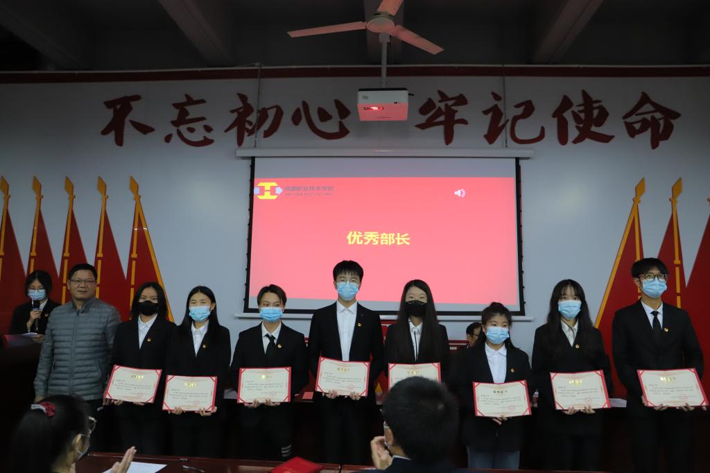 党总支副书记徐国辉为学生颁发优秀部长成员荣誉证书