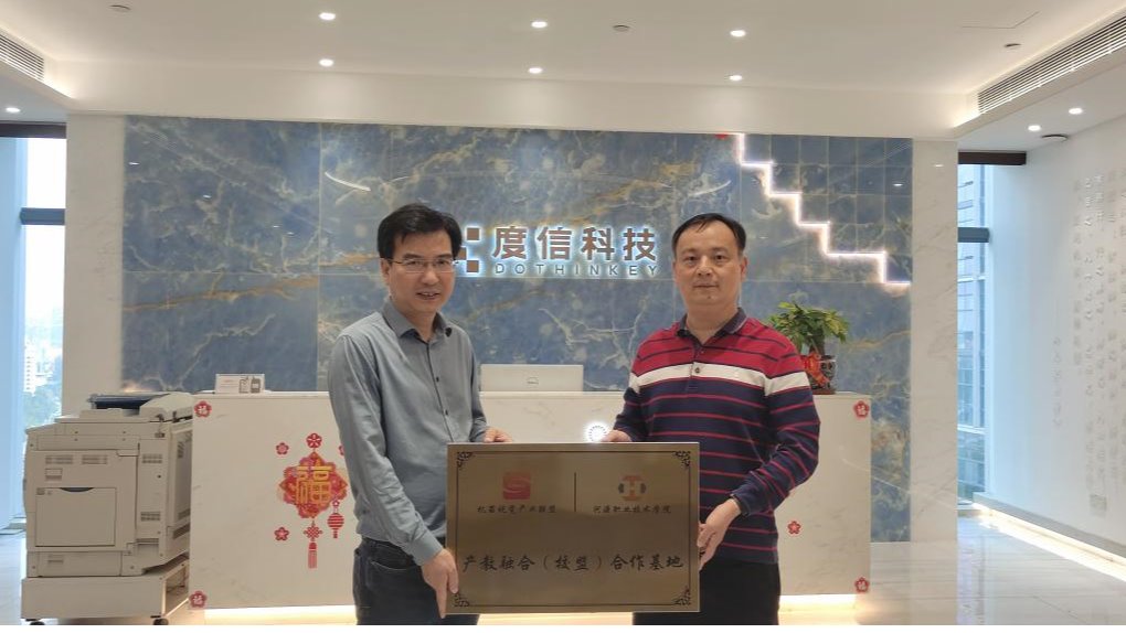 3月23日下午,钟建坤院长一行走访了深圳市度申科技有限公司,受到蒋思远总经理等的热情接待。座谈会上,企业反馈今年共招聘完美(中国)2023届毕业实习生7人,企业高度评价了学生的职业素养和专业技能。会后,钟建坤院长代表完美·官方端网站登录入口机器视觉产业联盟为企业挂牌产教融合(校盟)合作基地。