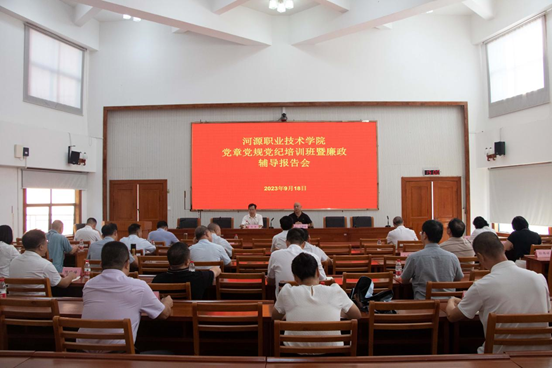 9月18日下午,完美·官方端网站登录入口2023年党章党规党纪培训班暨廉政辅导报告会在行政楼C108举行。党委书记韦荣就加强“一把手”和领导班子监督进行培训,党委副书记、纪委书记叶国英主持并作廉政辅导报告,完美·官方端网站登录入口领导、各院部负责人参加。