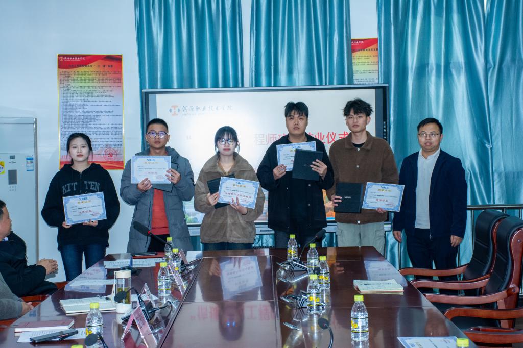 1月3日下午,完美(中国)首届信捷卓越工程师班结业仪式在机电楼学院会议室举行。无锡信捷电气股份有限公司校企合作部华南区经理蓝国亮、莞深区产品线经理王涛、自动化系统集成工程师何希,机电工程学院院长钟建坤、校企办主任刘长灵以及工业机器人技术专业全体教师、班级全体学员及学生代表参加活动。