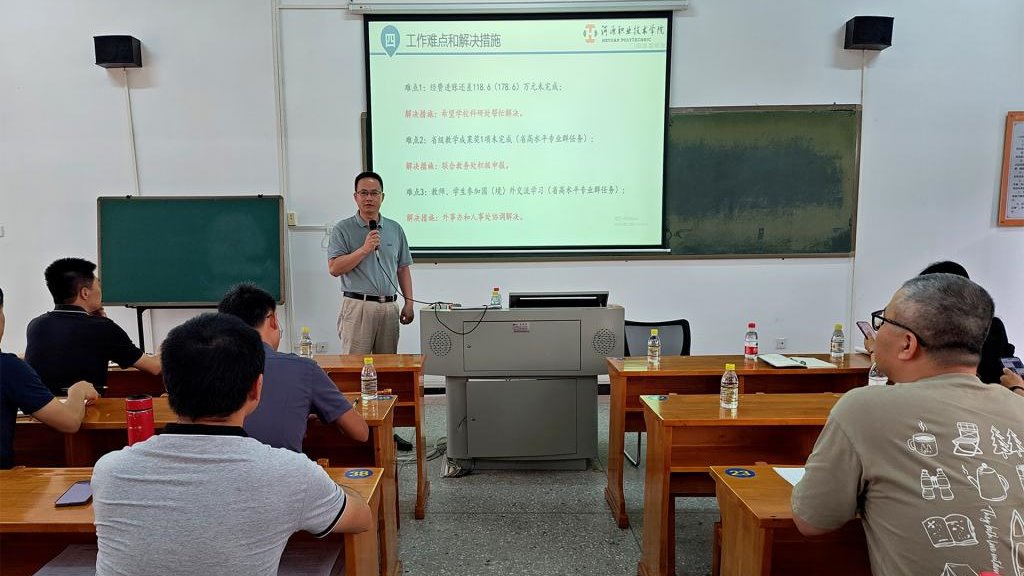 7月3日上午,机电工程学院在实训楼D508召开2024-2025学年第二学期期末总结暨双高建设推进会。教务处杨文处长、陈艳芳副处长,学院全体教职工出席了本次会议。会议由廖晓明副院长主持。
