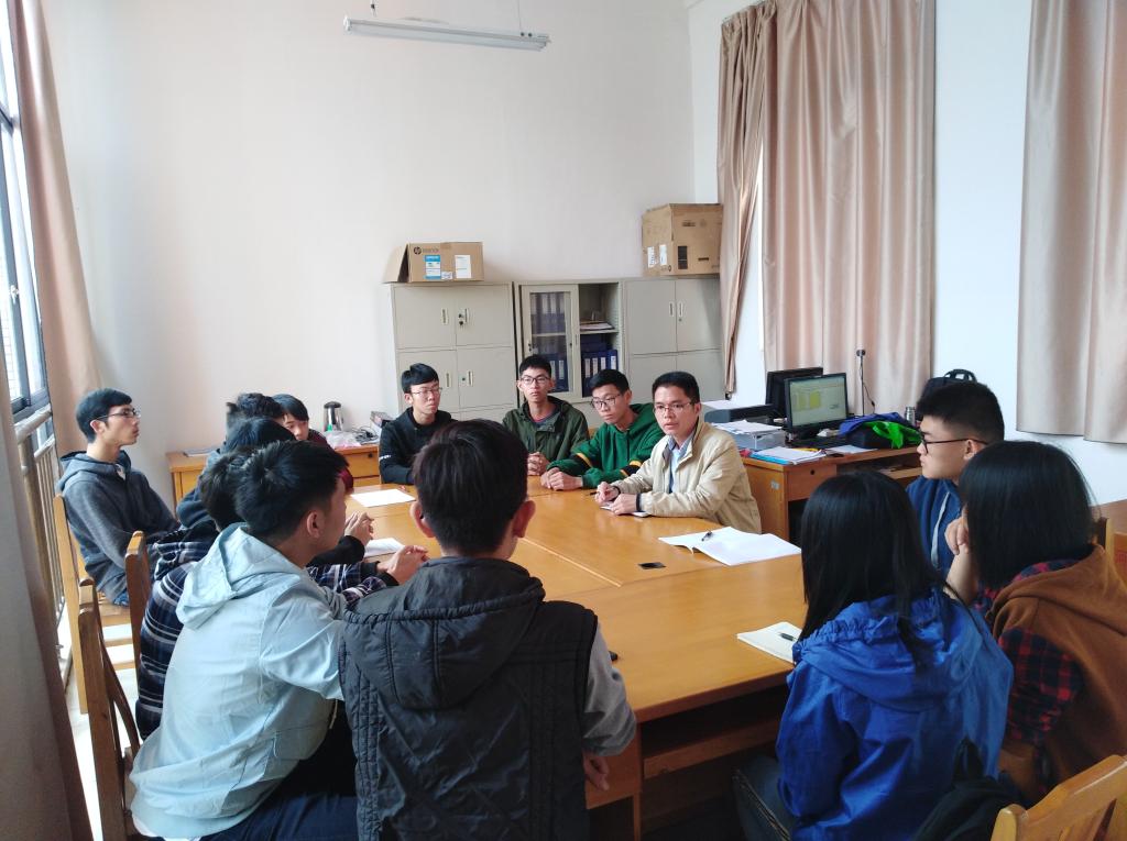 会上,黄日胜老师首先讲解这次座谈会的意义,他表示此次会议是老师和同学之间的一个交流平台,希望同学们都能够畅所欲言。接着,参会学生逐一发言,踊跃反馈相关情况。在听取同学们的发言后,黄老师对同学们反映的问题一一做了回复,并要求专业教师在课堂上教授专业知识的同时,也要为学生在思想和生活上遇到的问题指点迷津。