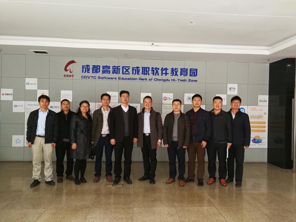 在成都职业技术学院学习交流期间,先后参观了该院实训基地和项目工作室,并介绍了软件分院的建设情况,分享了教学理念、人才培养模式改革的过程和经验,双方围绕计算机相关专业建设、师资队伍建设、实验实训基地建设、大学生创新创业等问题深入交换了意见和建议,一致表示愿意在创新创业理念、技术、人才、基地等方面进一步加强交流合作。