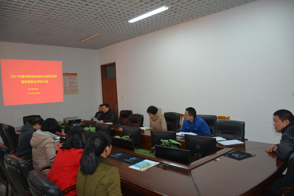 12月22日,图书馆党支部召开党支部书记述职测评暨民主评议大会。会议由图书馆党支部书记赖新优主持,全体党员参加。