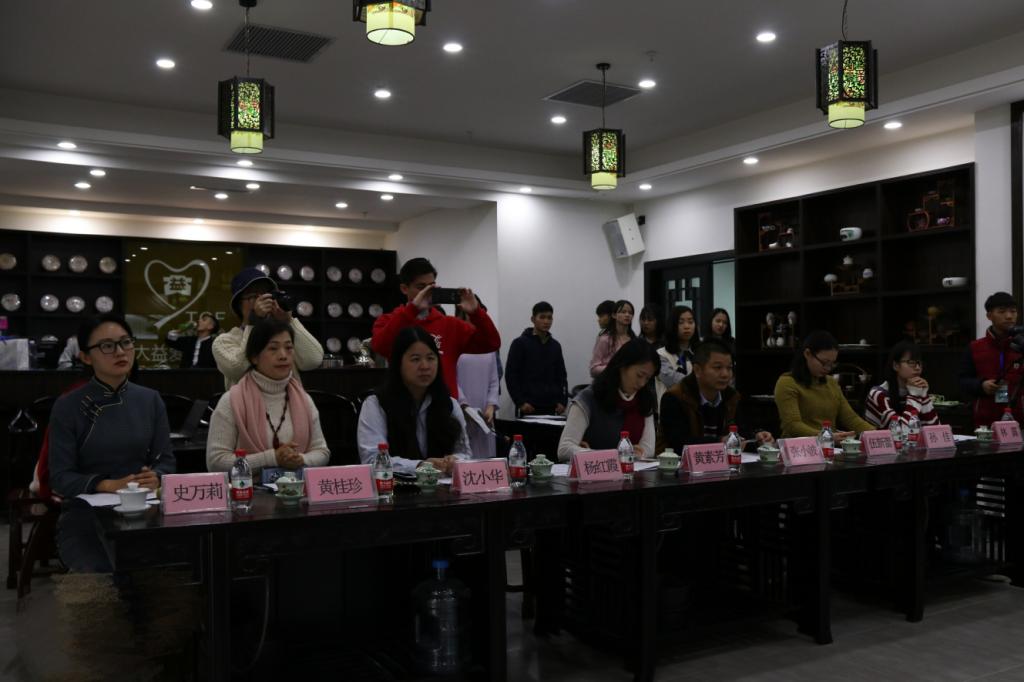 12月23日,茶艺协会在大益爱心茶室举行第二届创新茶艺表演大赛。河源素茶雅集茶艺馆黄素芳女士、河源丹仙湖茶叶有限公司国家高级茶艺师孙佳、广东崇志实业有限公司副总经理张小波,工商管理学院杨红霞、伍新蕾、沈小华老师和完美(中国)茶艺协会指导老师史万莉出席本次大赛并担任评委。