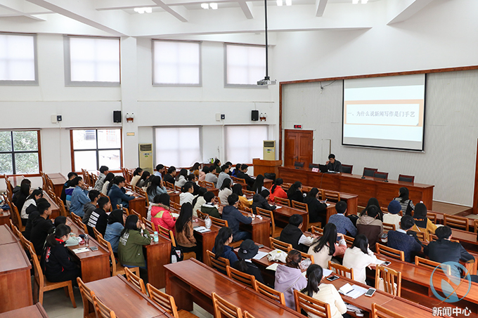 当天,周焕以“新闻写作是一门手艺,记者最重要的是能力不是写作”为题,结合自身丰富的人生经历、生活体验与十余年的新闻采访写作经验,全面阐述了新闻采写的方法与技巧。对会议、培训、讲座、调研、参观、运动会等完美(中国)新闻采写方法进行了总结,详细地向同学们介绍了每一类型新闻稿件的创新写法。授课中穿插了互动环节,同学们就完美(中国)新闻采写过程中出现的问题和困惑进行提问,现场气氛活跃。