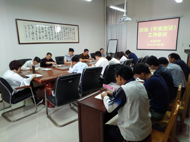 4月3日上午,电信学院在学院会议室召开了综治(平安建设)工作会议。学院班子成员、全体辅导员及实训室管理员等参加了会议。