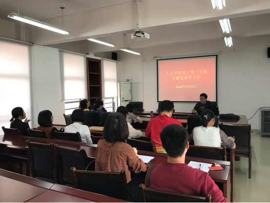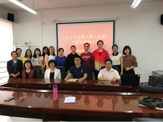 为全面深入学习习近平总书记在十三届全国人大一次会议广东代表团审议时的重要讲话精神,推进党支部“两学一做”教育学习常态化,推动基层党支部整体功能提升,4月11日下午,人文学院教工第三党支部全体党员在行政楼C309召开了专题党课学习会议,集中学习了习近平总书记的重要讲话精神。