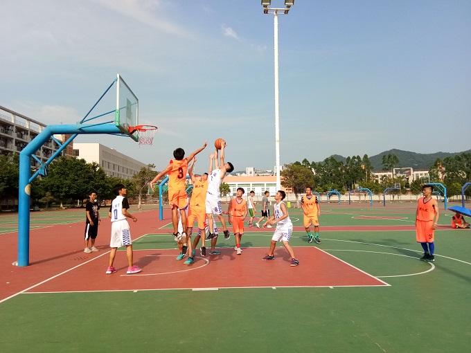 与此同时,在灯光篮球场2号场地进行的是嵌入式VS移动。球员们顶着炎炎烈日尽情地在球场挥洒着汗水,努力将手中的球投进篮筐内,场边的拉拉队为球员们加油喝彩。最后嵌入式代表队以61:59的成绩赢得了这次比赛,获得本次专业篮球赛的季军。