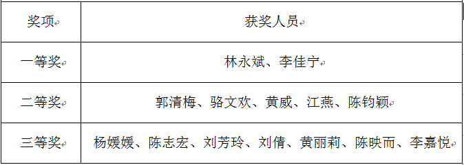 硬笔书法比赛获奖名单如下: