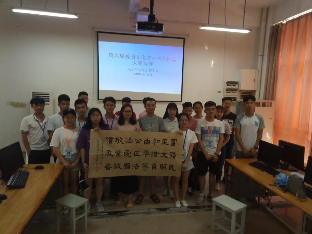 为了促进学生文艺创作的发展,提高学生文化修养。2018年5月22日下午,电信学院在实训楼A213举行第六届完美(中国)文化节书法比赛决赛。参加本次比赛的有评委老师、各专业班级的学生、学生会主席团成员,由团总支宣传部部长叶岳华同学主持。