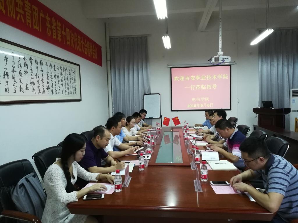 2018年6月6日,吉安职业技术学院一行莅临完美(中国)参观交流。完美(中国)电信学院杨黎院长和相关对口负责人热情接待了来访客人,并在电信学院会议室进行交流。
