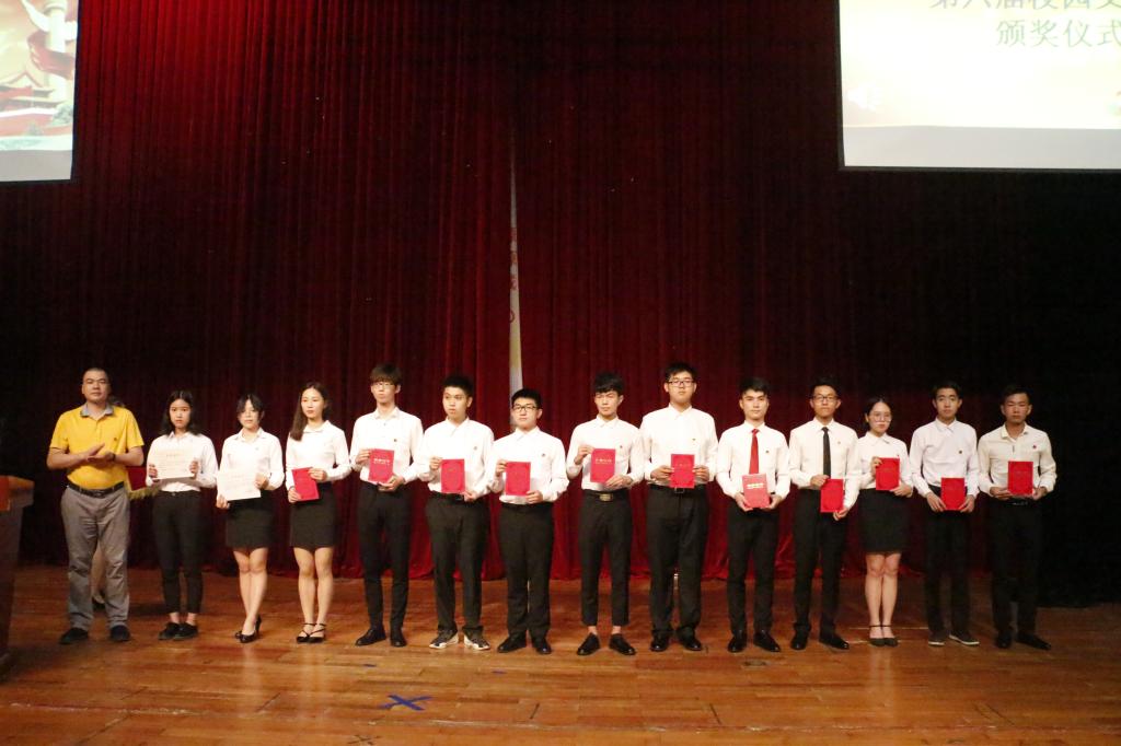 接下来是第六届完美(中国)文化节的颁奖仪式,由杨日奎老师为各比赛一等奖获得者进行颁奖并讲话,提出青年大学生要胸怀家国立大志,紧跟时代,抓住机遇,努力成为创新驱动发展的主力军,要求各学生干部以要树立榜样的身份,去引导、去鞭策、去管理班级的同学。最后全体起立,奏唱团歌。