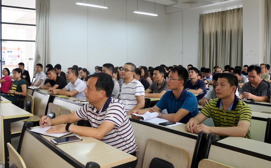 接着,钟建坤院长对学院本学期的党建、教学、学生管理、行政管理、教科研及社会服务等工作进行详细的总结,希望全体教职工共同努力,改变调课率高、专业建设的工作执行力待不够、部分教师职业教育教学能力和教研科研能力不足等现状。钟建坤院长希望下学年学院要进一步完善资料的管理制度,增强学院管理水平、形成有效的管理体系,加强学院领导班子、专业主任以及教师队伍建设等。