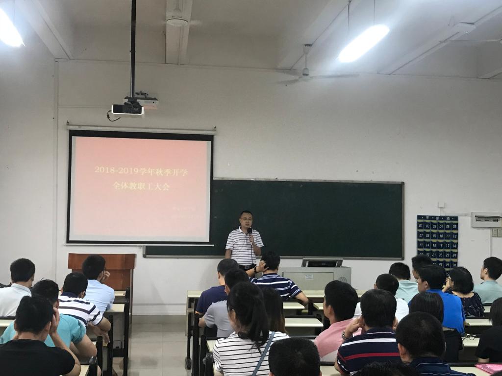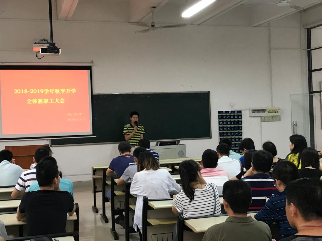 2018年8月31日上午10点,机电学院在实训楼B306召开2018年秋季开学教职工大会,会议由黄亮副书记主持。
