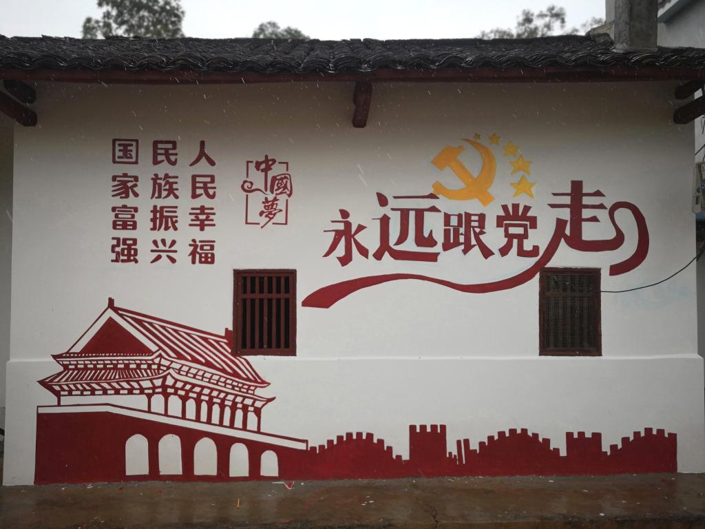 8月23日美术教育专业主任廖敏老师带领的一支墙绘志愿者来到金溪村绘制墙体,历时9天。在墙绘期间,艺术与设计学院学工负责人和三个辅导员看望志愿者们,关心同学们。虽然因雨天延长了志愿时间,但是志愿者们仍然团结合作,不畏风雨,不惧艰辛完成了墙体的绘制。绘制墙体的主题有中国梦、社会主义核心价值观、永远跟党走、共建共享美丽乡村等,通过墙绘这一文化服务使十九大精神这股“春风”吹入人心,让人人都为建设和谐社会贡献一份力量。